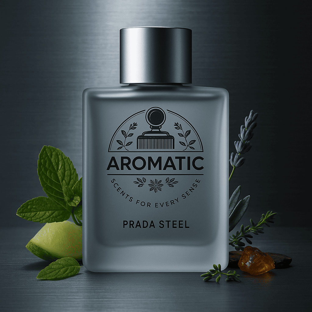 Prada Steel is inspired by Prada Men. It opens with Bergamot, Lavender, Mint, Thyme. The heart evolves with Moss, Geranium, Sandalwood. It dries down to Amber, Cedarwood, Tonka Bean. A confident scent suitable for daily wear or elevated occasions.