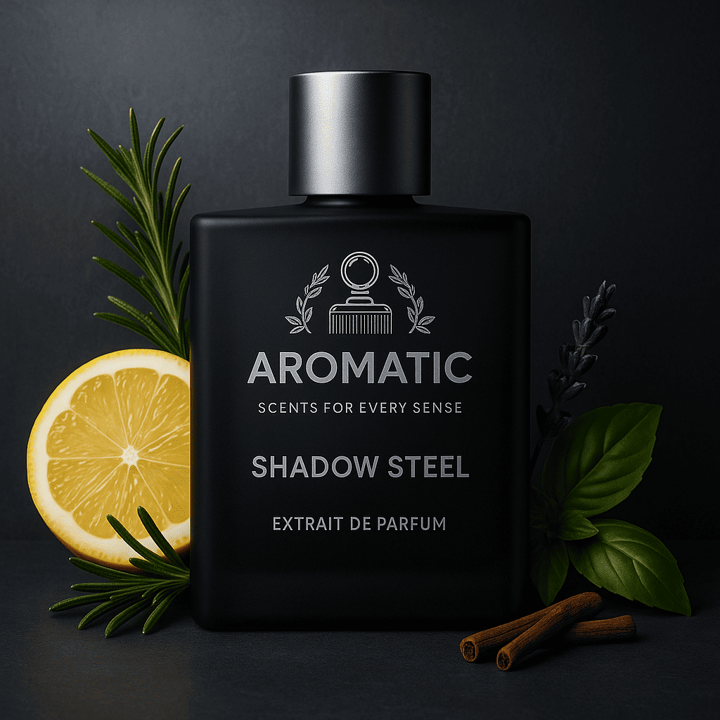 Shadow Steel is a modern masculine fragrance featuring top notes of Lemon, Bergamot, Rosemary, Basil, Verbena, Lavender, heart notes of Angelica, Juniper, Coriander, Cinnamon and a warm base of Oakmoss, Fir Balsam, Patchouli, Vetiver.