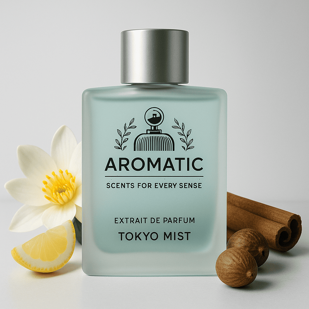 Tokyo Mist is inspired by Issy Miyake (M). It opens with Yuzu, Lemon, Bergamot, Tarragon. The heart evolves with Nutmeg, Water Lily, Cinnamon. It dries down to Tobacco, Sandalwood, Vetiver, Musk. A confident scent suitable for daily wear or elevated occasions.
